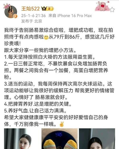 而她的粉丝们,见证了她一斤一斤地增加,体重从79斤到86斤,不仅仅是数字的上涨,背后却是她无数个难熬的夜晚和不被理解的时刻。